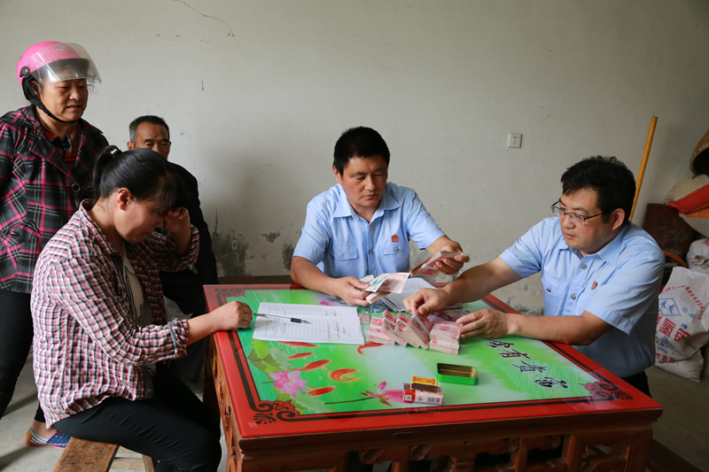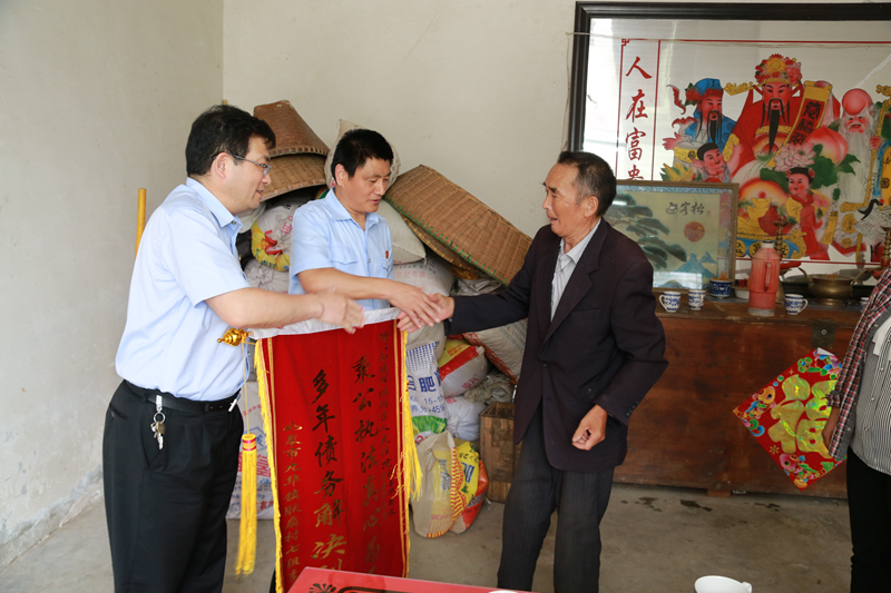 但港闸法院执行法官没有放弃执结该案的努力。虽然承办法官更替了多人,但他们每次前往东台办案都会找刘某家属做一做思想工作,到银行查一查刘某账户有无存款。银行账户网络查控系统上线运行以来,港闸法院更是将该案作为执行重点,定期对刘某在各家银行的账户发起查询。功夫不负有心人,今年6月份,刘某在东台某银行账户汇入存款六万余元,港闸法院遂立即对账户采取冻结措施,承办法官马建华迅速赶赴东台对该存款实施了扣划,同时对新发现的一笔一万余元的存款一并实施了扣划。至此,李某霞申请执行标的及相应利息共计八万余元全部执行到位。考虑到李某霞身体原因,6月28日,张善华与马建华从银行取出现金,将执行款送到了其位于如皋市九华镇的家中。李某霞一家也请人制作了一面鲜艳的锦旗表达感激之情。