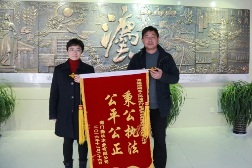 “港闸法院真是为人民服务的好法院,真诚的感谢你们。”12月27日,海门市某木业公司法定代表人陈某来到南通市港闸区法院,将一面印有“秉公执法、公平公正”的锦旗送到行政庭庭长刘海燕手中,连声表示感谢。